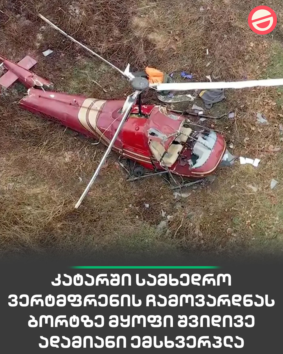 კატარში სამხედრო ვერტმფრენის ჩამოვარდნას ბორტზე მყოფი შვიდივე ადამიანი ემსხვერპლა | ინფორმაციას CNN ქვეყნის თავდაცვის სამინისტროზე დაყრდნობით ავრცელებს და წერს, რომ ვერტმფრენი ტერიტორიულ წყლებში რუტინული დავალების შესრულების დროს ტექნიკური გაუმართაობის გამო ჩამოვარდა. მათივე ცნობით, სამძებრო-სამაშველო ოპერაციები უკვე დასრულდა. თურქეთის საგარეო საქმეთა სამინისტროს ინფორმაციით კი ბორტზე თურქეთის სამი მოქალაქე იმყოფებოდა