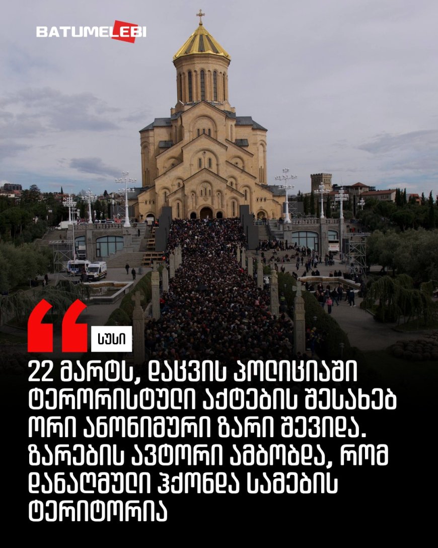 სახელმწიფო უსაფრთხოების სამსახურს და მის კონტრტერორისტულ ცენტრს გააჩნია ყველა პირობა, მათ შორის თანამედროვე ტექნიკური საშუალებები, მსგავსი დანაშაულებრივი ქმედებების გამოვლენისა და იდენტიფიცირებისთვის. ამიტომ, ვაფრთხილებთ ყველას, თითოეულ მსგავს ფაქტზე ჩვენი მხრიდან იქნება მკაცრი სამართლებრივი რეაგირება“— ნათქვამია სუს-ს განცხადებაში