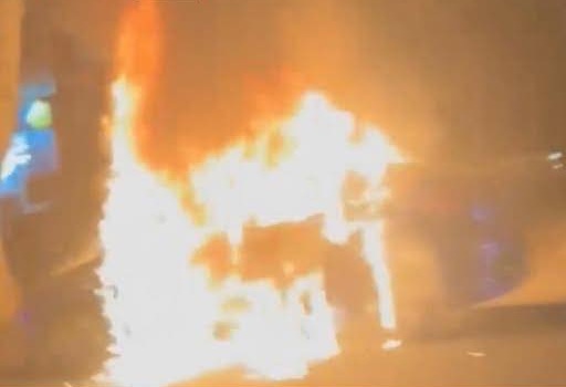 VIDEO: უმძიმესი ავტოსაგზაო შემთხვევა თბილისში – კადრები ბელიაშვილის ქუჩიდან სადაც გვიან ღამით ავტომობილი დაიწვა