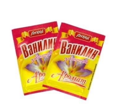 ვანილინი კი არის ნივთიერება, რომელსაც აქვს ვანილის სუნი და ხშირ შემთხვევაში, ქიმიური გზით მიიღება. ვანილის შემცველობა კი 3%. ასევე შეიცავს ვანილის ხელოვნურ არომატიზატორს და სიმინდის სახამებელს.