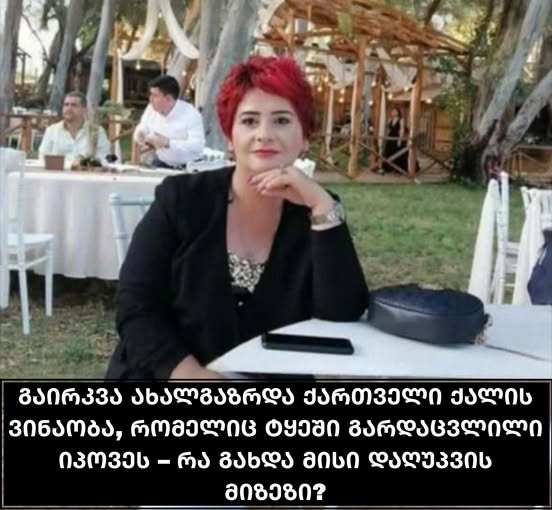 ცნობილია, გერმანიაში ქართველი ემიგრანტის ვინაობა, რომელიც ტყეში გარდაცვლილი იპოვეს. არსებული ინფორმაციით, იგი 45 წლის სოფო კუპრავაა.